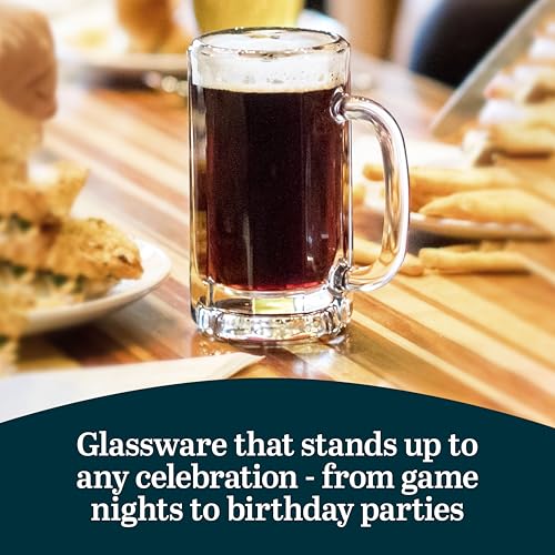 Libbey Heidelberg Glass Beer Mug Set, German Beer Glasses Set Of 4 to Serve Ales and Lagers, Freezer Beer Mugs for Birthdays, Housewarming Parties